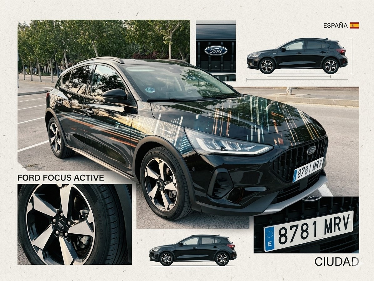 Ford Focus1.0 Ecoboost MHEV Active + automático, motor híbrido de gasolina/eléctrico de 155 CV con transmisión automática, distintivo ECO, como nuevo, equipado con: