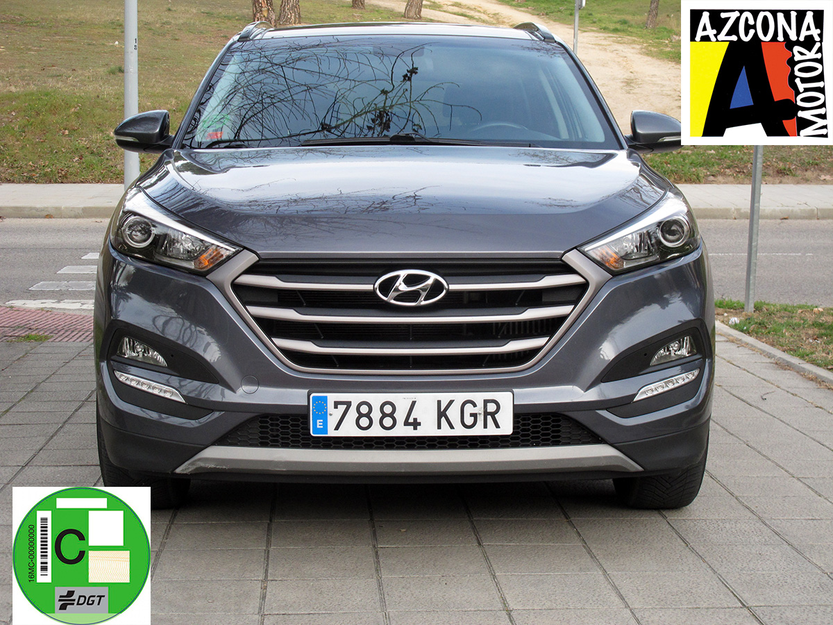 Hyundai Tucson 1.6 TGDi Style DCT 4x4, como nuevo, coche de único propietario con todas las revisiones pasadas puntualmente en servicio oficial Hyundai en Madrid. Motor muy fiable de gasolina EURO 6 de 177 CV con distintivo C verde de la DGT, con cambio automático secuencial de 7 velocidades, tracción integral 4x4 y tope de equipamiento: Techo solar practicable, tapicería de cuero completo con asientos deportivos calefactables y reglaje lumbar eléctrico, control de crucero y limitador de velocidad, capó activo para peatones, control de presión de los neumáticos (TPMS) con indicador de rueda, cámara trasera y sensores de aparcamiento, luces diurnas LED, ISOFIX, faros de xenón, luces antiniebla, ordenador, climatizador automático, encendido automático de luces, bluetooth, navegador, llantas de aleación de 17", etc. etc. Garantía 12 meses. Facilidades de pago.